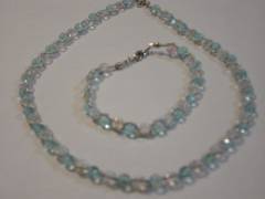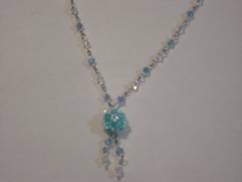 ファイアポリッシュアクアマリン・クリスタル4oを極小シルバーで波型に編み込み。くねくね模様がいい!