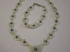 ビーズが動くように潰し玉を各所に入れました。二本を交差さえて止めます。揺れるビーズにうっとり。