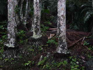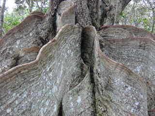 | 石垣のレンガはすてきです | 街路樹にはなんと花が! | 西表の巨木 |