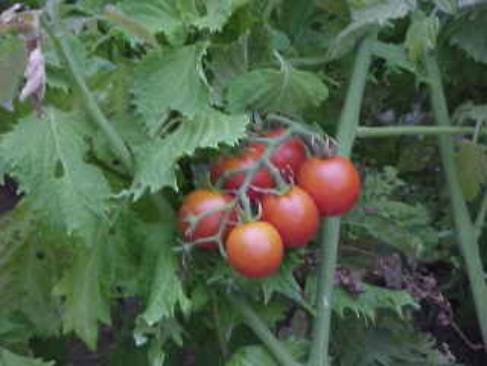 これは、ミニトマト。まわりの葉っぱは、青ジソです。
